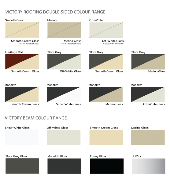 Whatever the project, once you’ve completed the profile selection it’s time to select colours and finishes. Be inspired as you choose from an extensive COLORBOND® Steel gloss range.